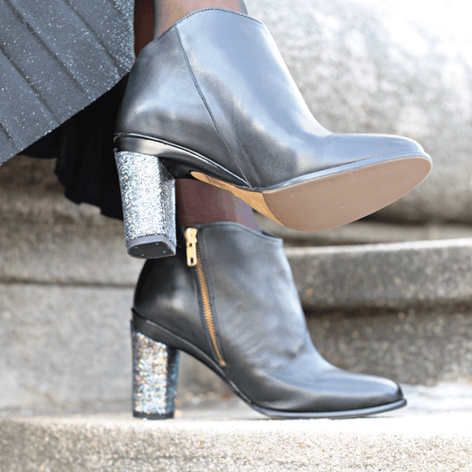 They lock in stable and secure.Portia Black Lambskin Ankle Boot